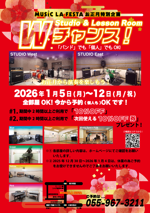 尚、MUSIC LA FESTAは、2025年12月30日〜2026年1月4日までお休みをいただき、ご予約をお受けできませんのでご了承をお願いいたします。