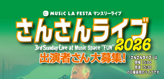 今月の26日(日)は、さんさんライブを開催します! 出演は、全5グループ。 ロックユニット、バンド、弾語りなど色々なジャンルが楽しめる1日になると思いま >>>